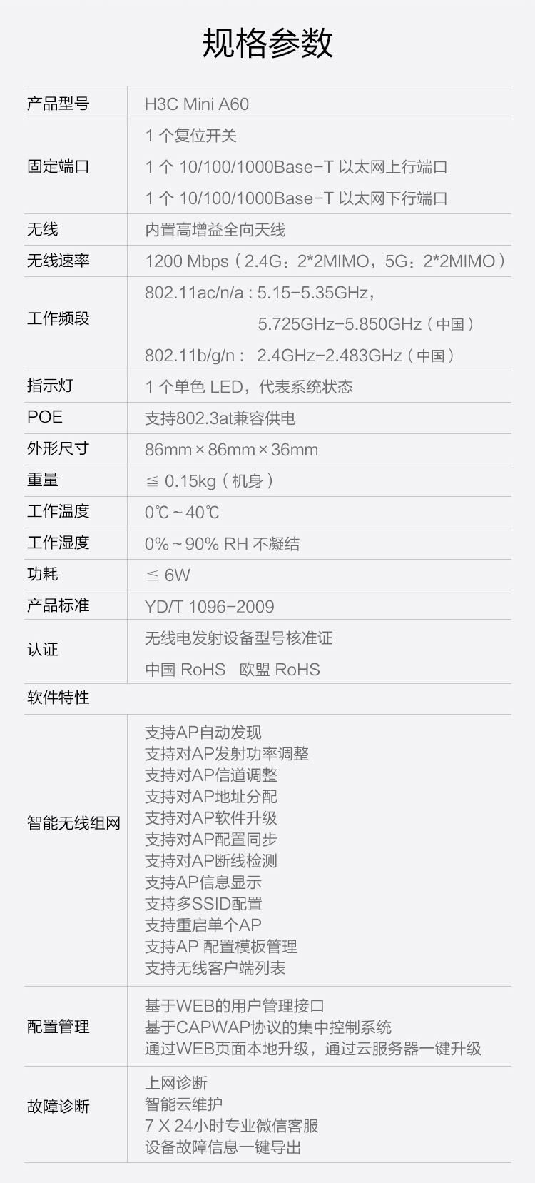 H3C 无线双频吸顶AP Mini A60